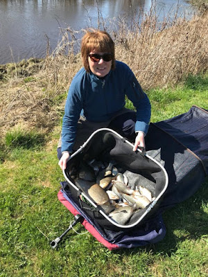 Det har ikke blitt satt opp noe stevne så tidlig i meitesesongen, så da dro vi igang ei kule i Rakkestadelva, REMA-strekka. 4 stk møtte. Jeg, Tonje, Finn E og Andrzej. Vi lot Tonje sitte nedstrøms kant mens vi andre trakk. Jeg havnet nes nedstrøms, Andrzej oppstrøms meg og da FInn på kanten oppstrøms.